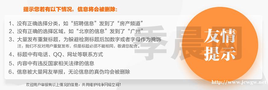 1、除本网站注明之服务条款外,其他一切因使用本网发布系统而引起之任何意外、疏忽、合约毁坏、诽谤、版权或知识产权侵犯及其所造成的损失(包括因下载而感染电脑病毒),季晨网概不负责,亦不承担任何法律责任。